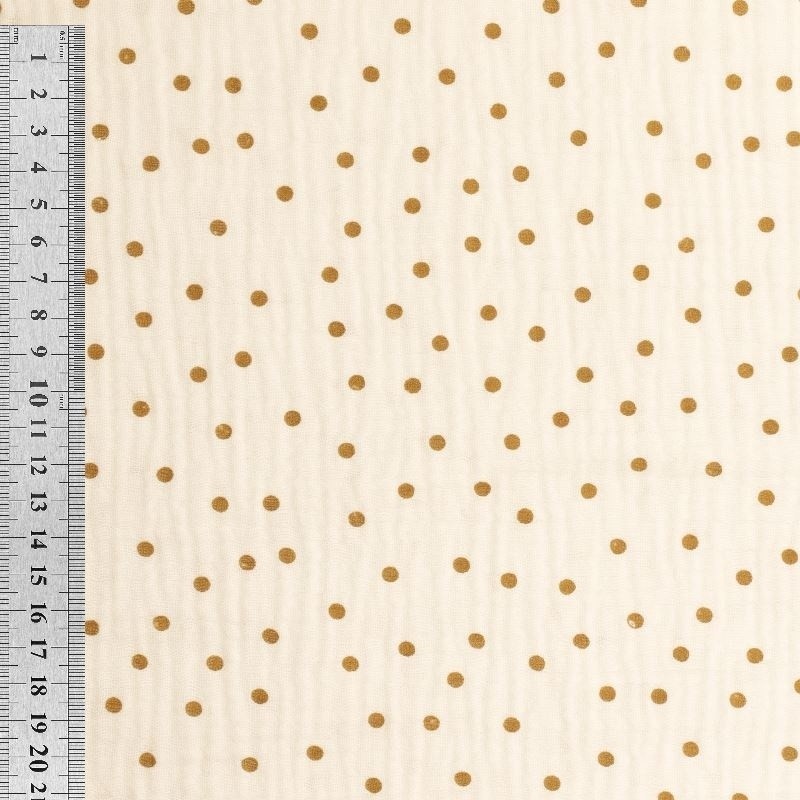 Tissu Double Gaze Imprimée Pois Beige