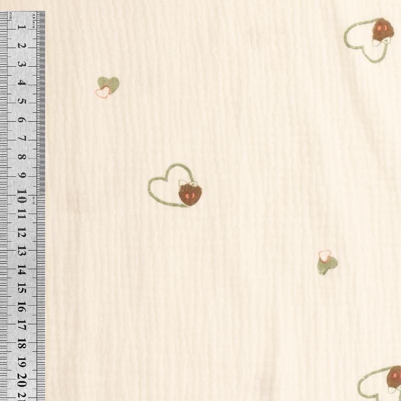 Tissu Double Gaze Imprimée Coeur Vert