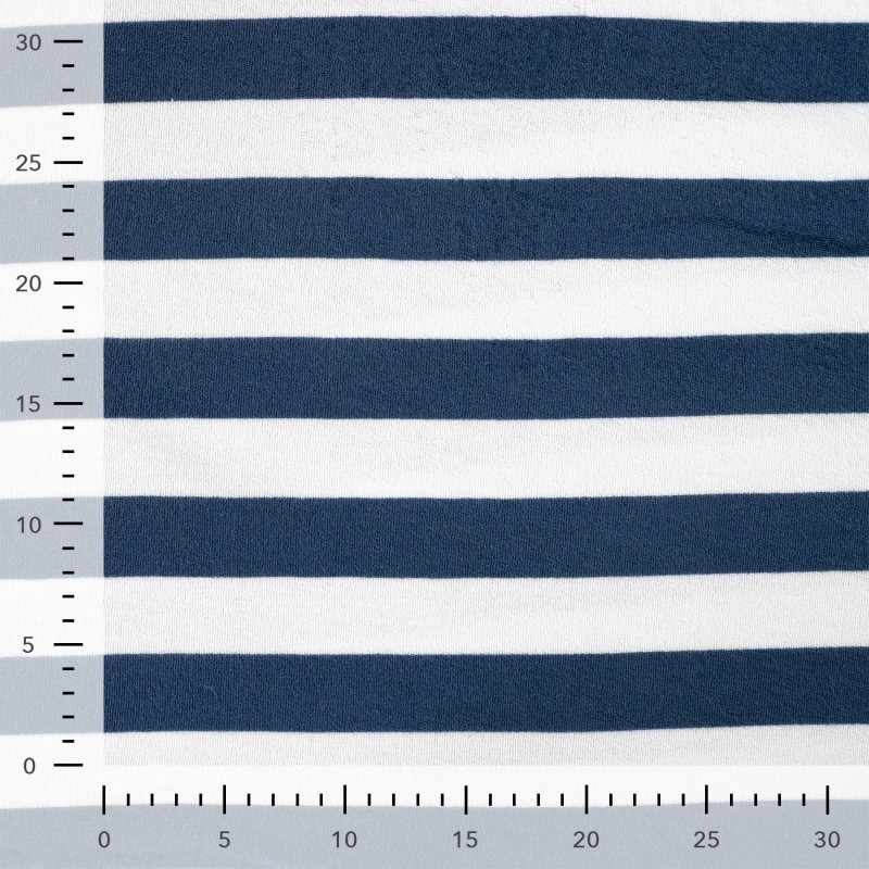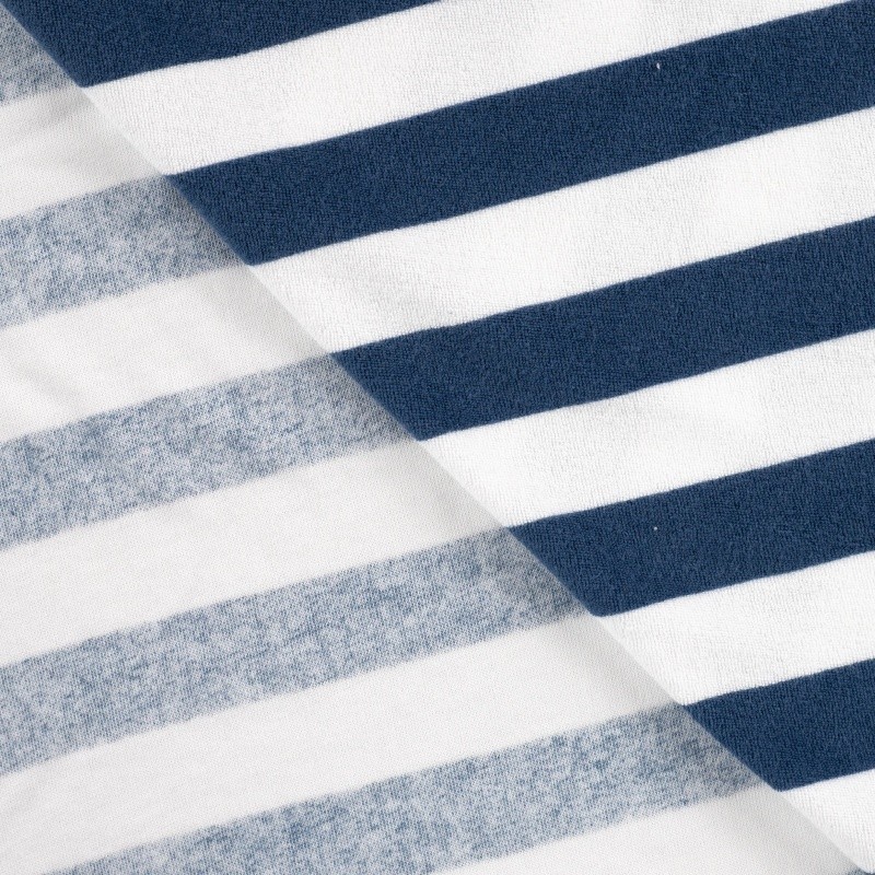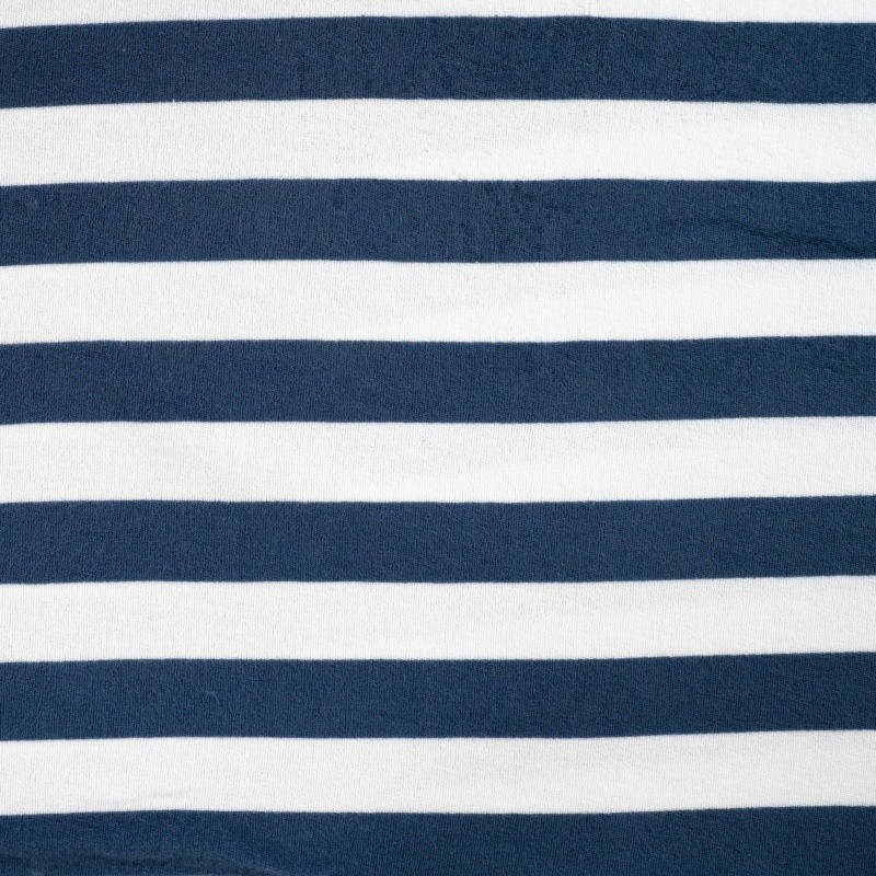 Alliez confort et style avec le tissu PicoTerry rayé bleu marine. Ce tissu doux et respirant séduit par sa texture bouclette subtile et ses nombreux coloris. Son aspect légèrement texturé sublime les teintes en leur apportant du relief et du caractère.