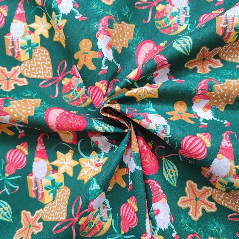 Le tissu Mutin, 100% coton, orné d’un motif de branches de sapin et de petit biscuit sur fond vert, apportera une touche festive et originale à votre décoration. Idéal pour réaliser une nappe, un calendrier de l’Avent ou un chemin de table, ce tissu imprimé s’adapte à toutes vos créations.