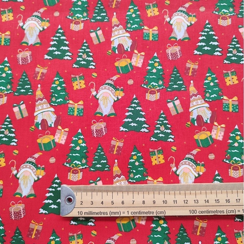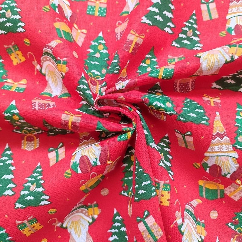 Le tissu Gnomes, 100% coton, orné d’un motif gnome coloré sur fond rouge, apportera une touche festive et originale à votre décoration. Idéal pour réaliser une nappe, un calendrier de l’Avent ou un chemin de table, ce tissu imprimé s’adapte à toutes vos créations.