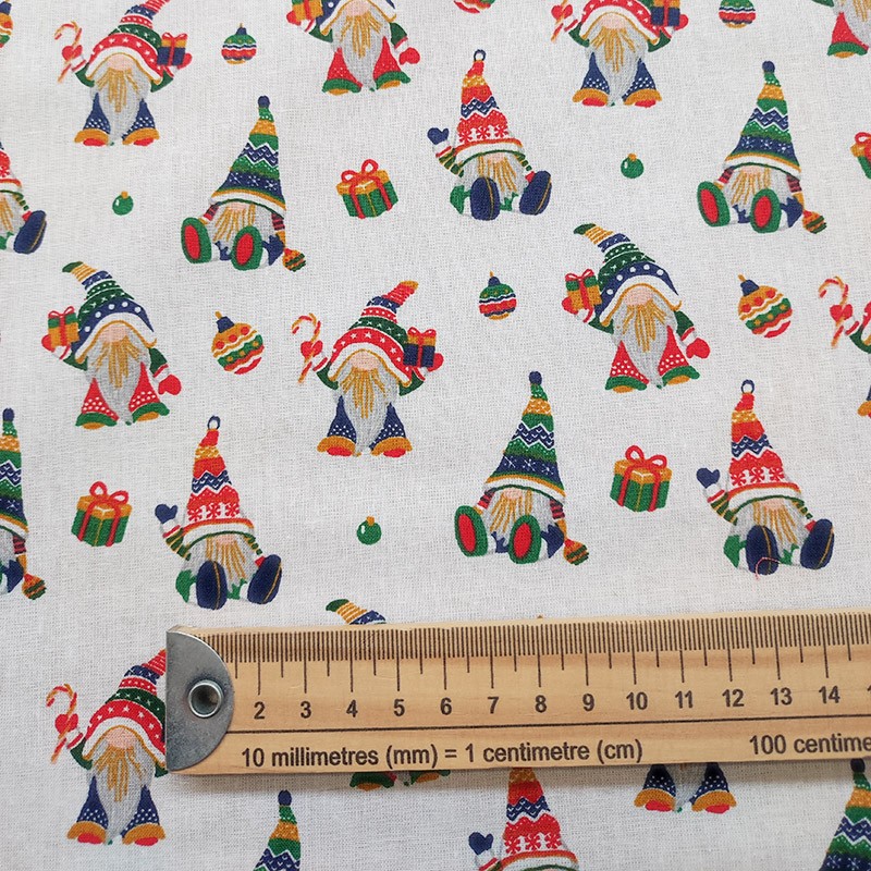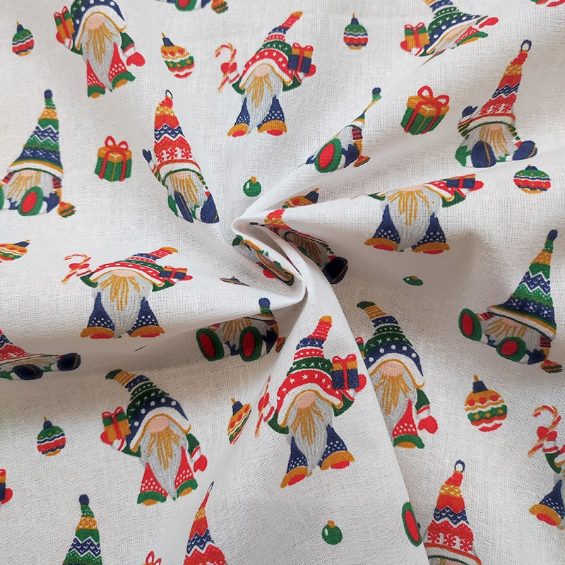 Le tissu Frodon, 100% coton, orné d’un motif de lutins sur fond blanc, apportera une touche festive et originale à votre décoration. Idéal pour réaliser une nappe, un calendrier de l’Avent ou un chemin de table, ce tissu imprimé s’adapte à toutes vos créations.