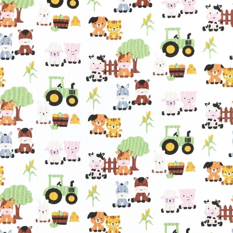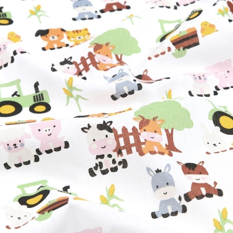 Craquez pour ce tissu Pature, parfait pour créer un univers tendre et plein de douceur pour les tout-petits ! Sur un fond blanc, les adorables animaux de la ferme apportent une touche de fantaisie et de légèreté qui séduira les petits.Confectionné en 100% coton doux et léger (110 g/m²), ce tissu est idéal pour réaliser tous vos projets couture dédiés à l’univers de bébé et de l’enfant : rideaux, coussins, linge de lit, gigoteuses, vêtements légers.