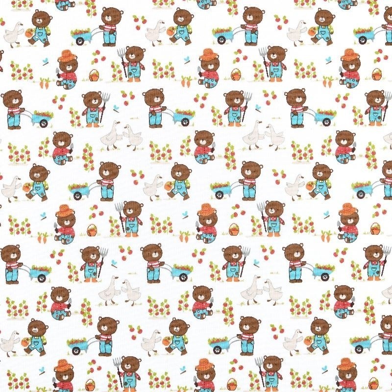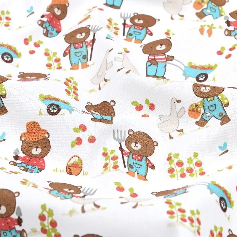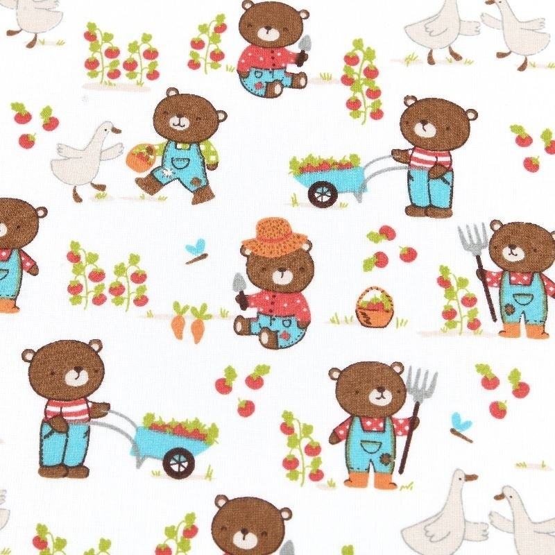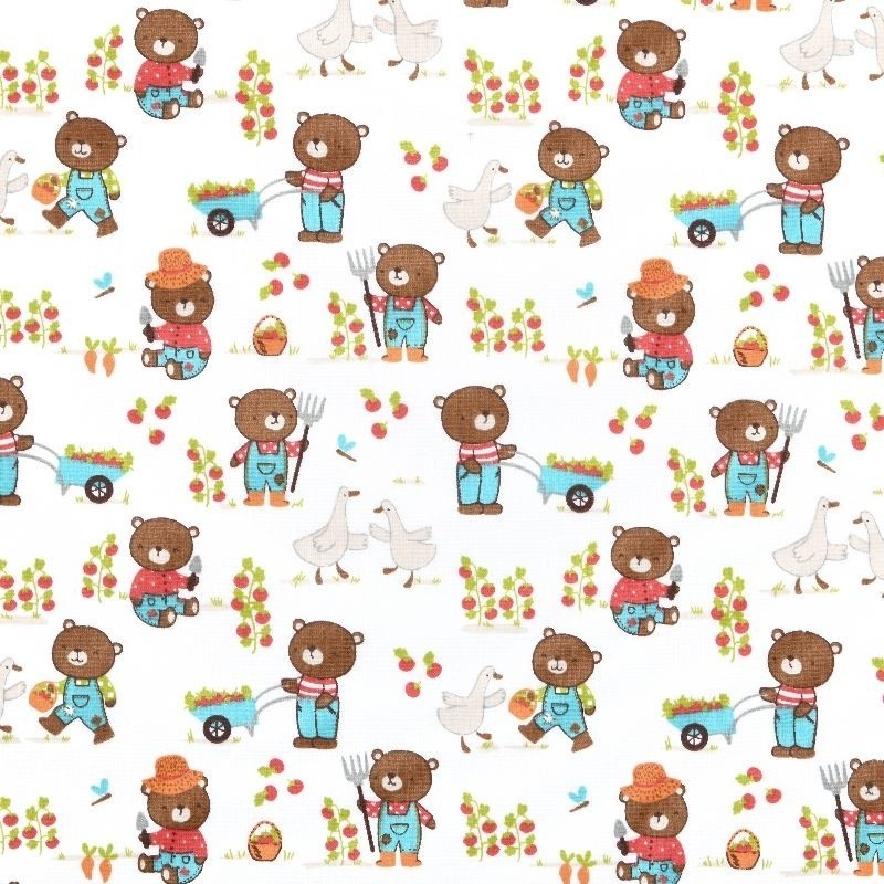 Craquez pour ce tissu Jardin, parfait pour créer un univers tendre et plein de douceur pour les tout-petits ! Sur un fond blanc, les adorables oursons apportent une touche de fantaisie et de légèreté qui séduira les petits.Confectionné en 100% coton doux et léger (110 g/m²), ce tissu est idéal pour réaliser tous vos projets couture dédiés à l’univers de bébé et de l’enfant : rideaux, coussins, linge de lit, gigoteuses, vêtements légers.