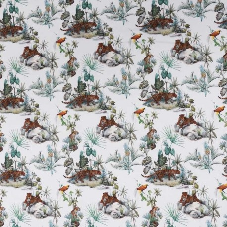 Tissu Popeline Imprimé Digitale Ani Wild Imprimé Blanc
