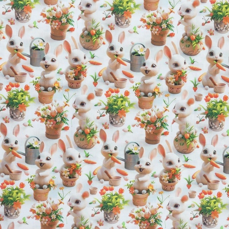Apportez une note originale à vos créations grâce à ce tissu Pots à impression digitale, orné d'adorables lapins effet 3D sur un fond doux et lumineux. L'impression digitale permet une grande précision dans les détails, avec des couleurs nettes et des contrastes réalistes qui renforcent l'illusion de relief.