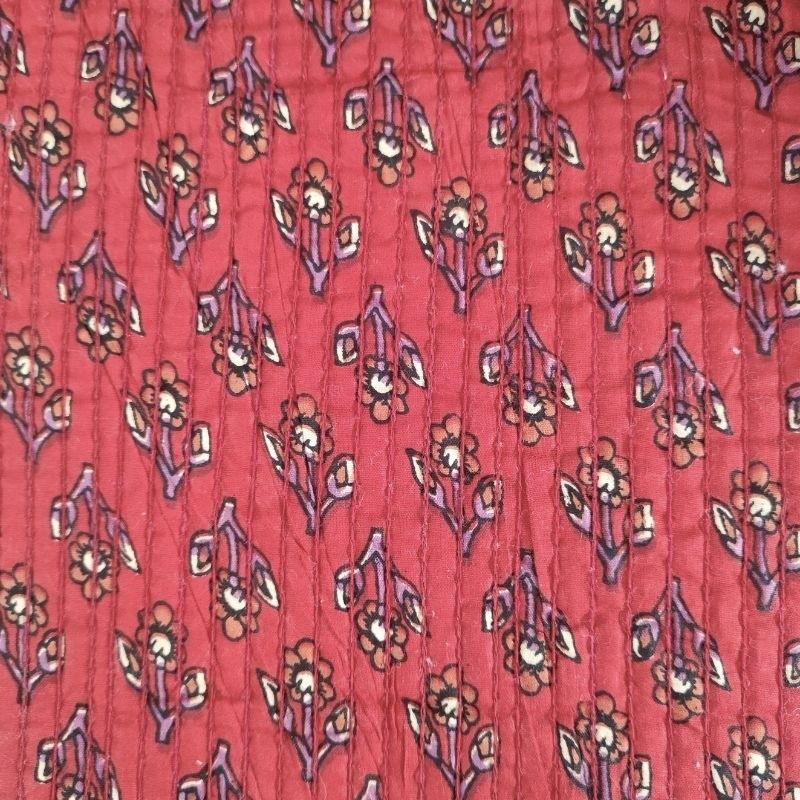 Découvrez ce tissu blockprint matelassé 100% coton double face, orné d'un magnifique motif végétal et floral rouge. Les motifs sont imprimés à la main avec des tampons.Ce matelassé apporte de l'authenticité et de l'élégance à vos projets de couture décoration intérieure, ou créations vestimentaires...
