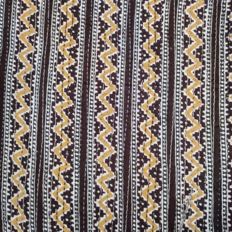 Découvrez ce tissu blockprint matelassé 100% coton double face, orné d'un magnifique motif floral et géométrique écru, doré et marron. Les motifs sont imprimés à la main avec des tampons.Ce matelassé apporte de l'authenticité et de l'élégance à vos projets de couture décoration intérieure, ou créations vestimentaires...