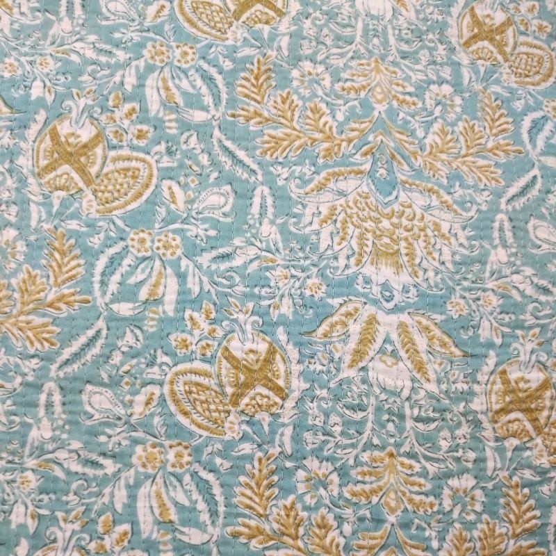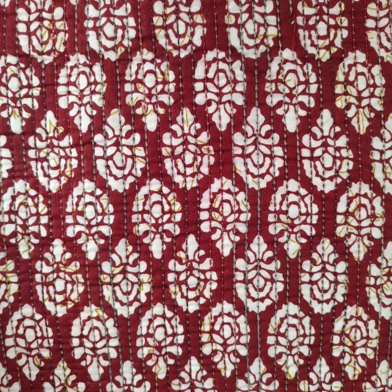 Découvrez ce tissu blockprint matelassé 100% coton double face, orné d'un magnifique motif végétal et floral rouge et bleu clair. Les motifs sont imprimés à la main avec des tampons.Ce matelassé apporte de l'authenticité et de l'élégance à vos projets de couture décoration intérieure, ou créations vestimentaires...