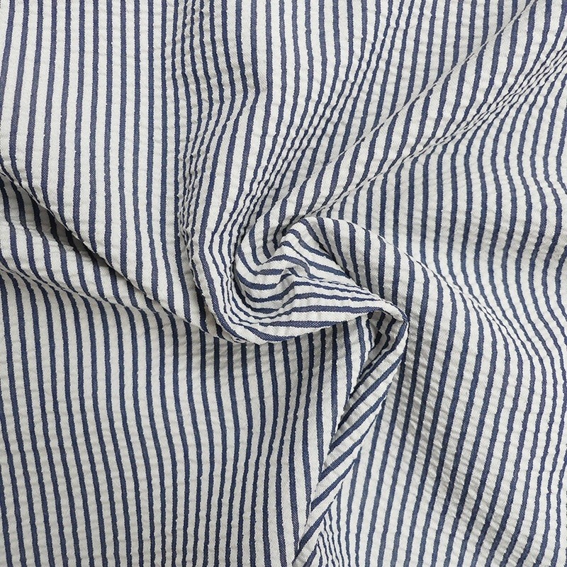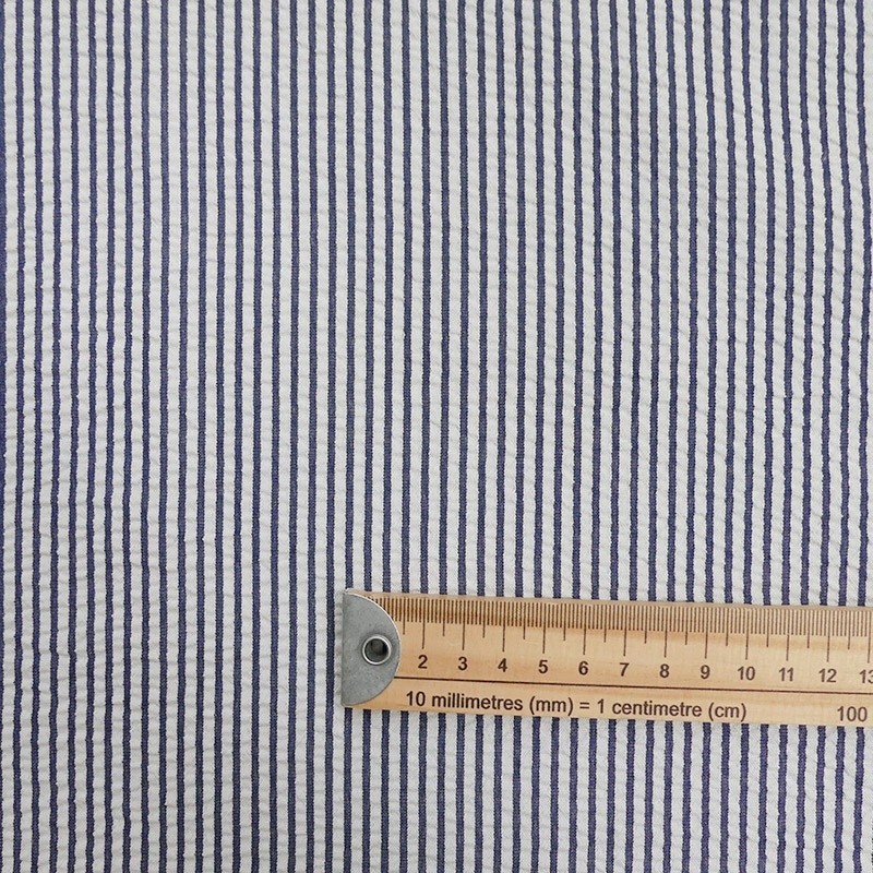 Ce tissu seersucker rayé marine sera parfait pour la confection de vêtements. On aime l'effet gaufré de ce tissu.