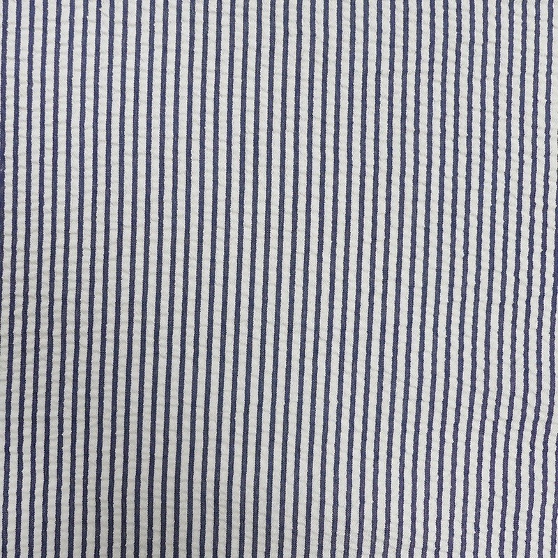 Tissu Toile Chemise Seersucker Petites Rayures Marine