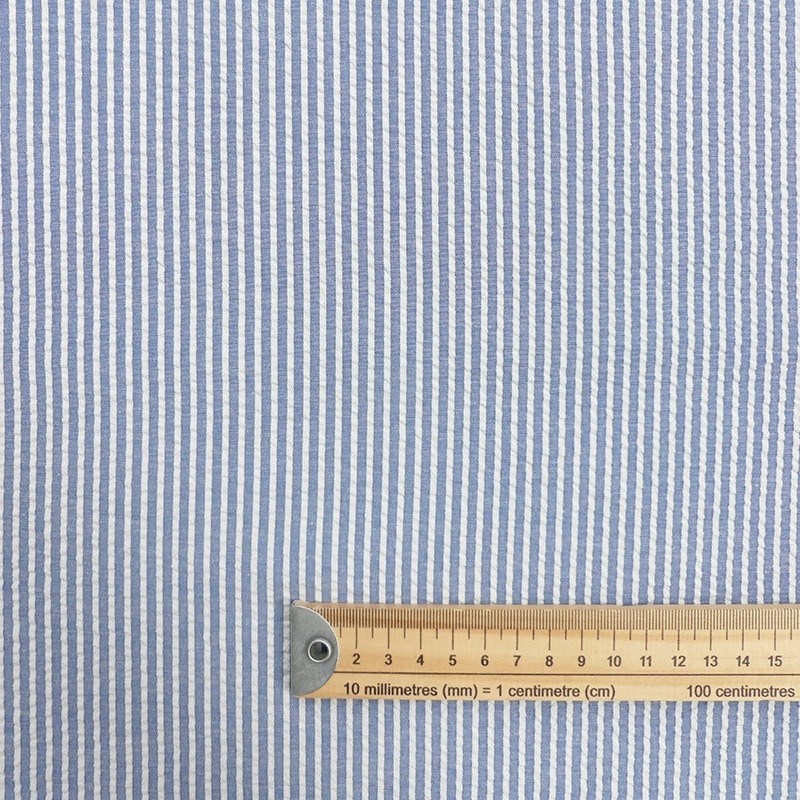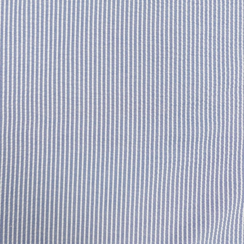 Tissu Toile Chemise Seersucker Petites Rayures Bleu Clair