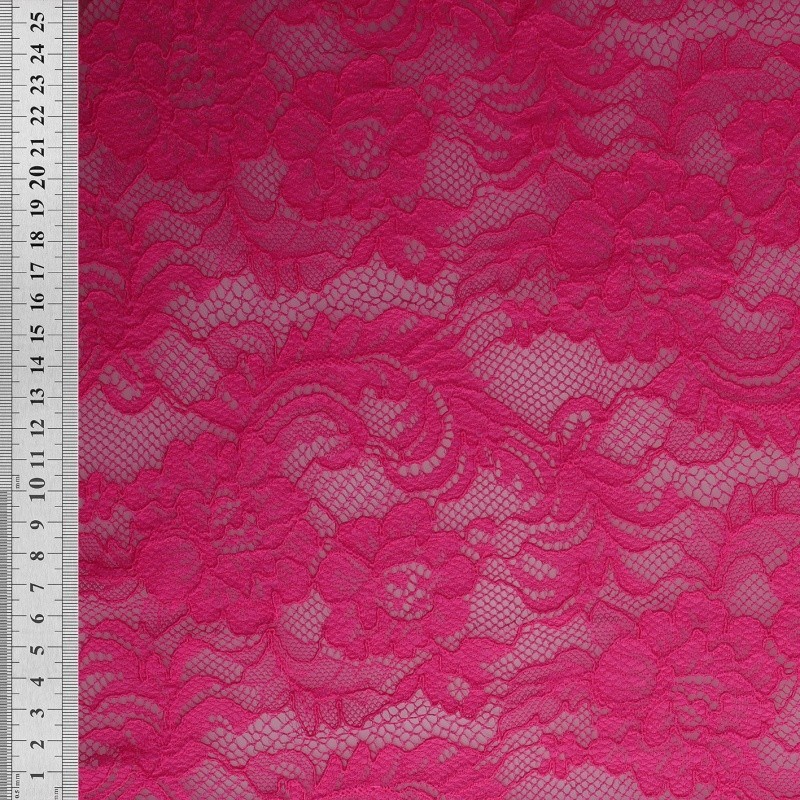 Cette jolie dentelle élastique coloris fuchsia est déclinée dans différents coloris. On aime ses motifs roses qui apporteront une touche de délicatesse dans la confection de vos vêtements et accessoires féminins.