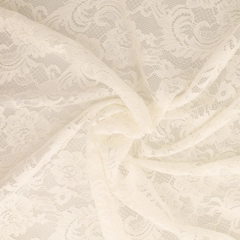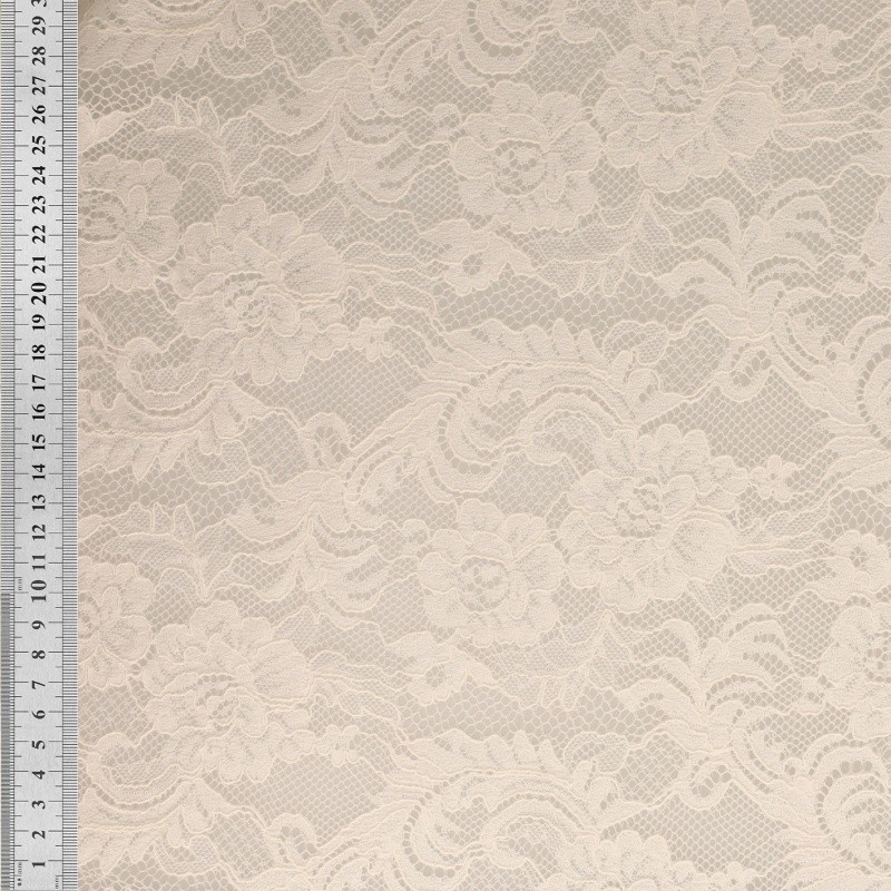 Tissu Dentelle Elastique Roses Ecru