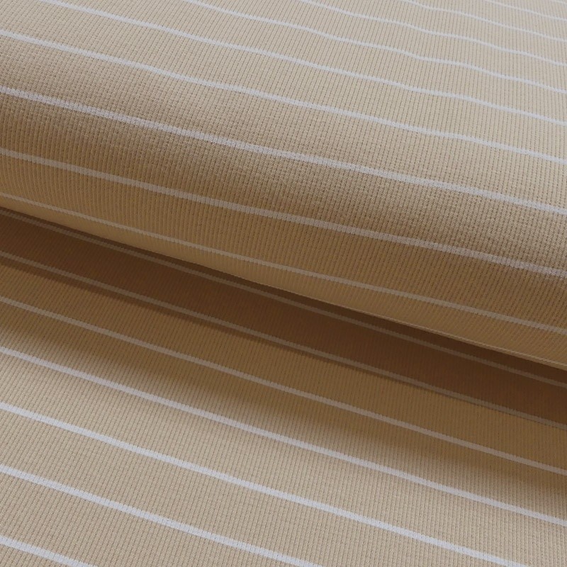 Tissu Jersey Côtelé Rayure Fond Beige