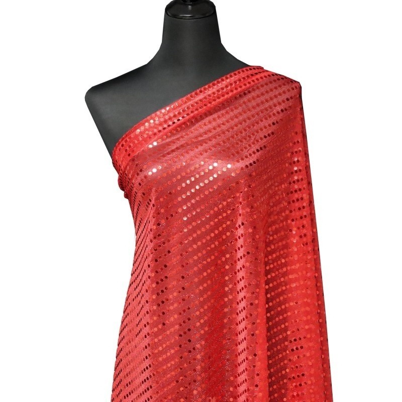 Offrez à vos créations une allure éclatante avec notre tissu paillettes sur voile rouge. Conçu sur un voile scintillant argent, ce tissu est entièrement rehaussé de paillettes parfaitement assorties à la couleur du support, créant un rendu harmonieux, homogène et irrésistiblement brillant. La combinaison du voile léger, au mouvement fluide, et des paillettes rouges ton sur ton est idéale pour sublimer la lumière. Parfait pour la réalisation de robes de soirée, tenues événementielles, costumes artistiques, accessoires glamour ou éléments décoratifs haut de gamme.