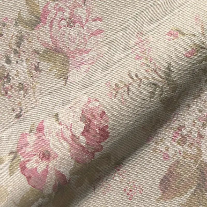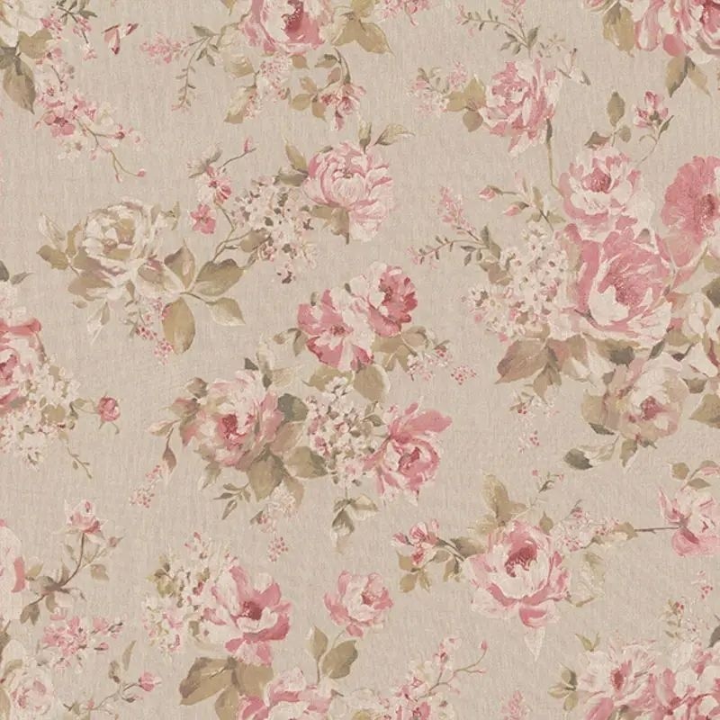 Tissu Grosses Fleurs Rose Fond Coloris Lin