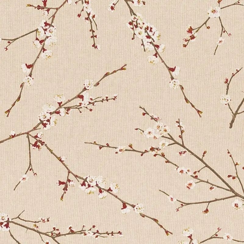 La toile demi panama son imprimé fleur du japon sur un fond coloris lin est un tissu hyper résistant. Ce tissu sera parfait pour la confection de rideaux, coussins ou accessoires déco.Le plus produit: ce tissu est certifié Oeko-tex