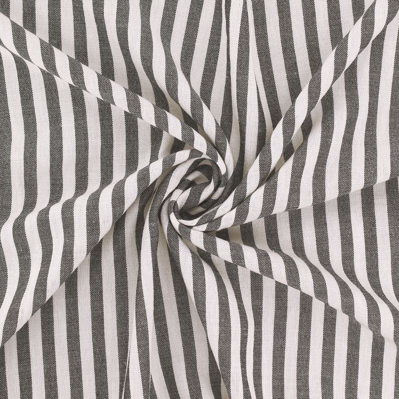 Cette étamine tissé-teint se distingue par sa légèreté et sa main souple. Ce tissu au tombé aérien est idéal pour les vêtements estivaux. Le motif à fines rayures coloris noir, obtenu par un tissage teint fil, offre un rendu subtil et élégant, avec une excellente tenue des couleurs et une grande durabilité dans le temps. Les rayures régulières structurent le tissu tout en conservant une esthétique légère et contemporaine. Polyvalente, cette étamine convient parfaitement à la réalisation de chemisiers, robes légères, tuniques, voiles, ou détails de mode nécessitant finesse