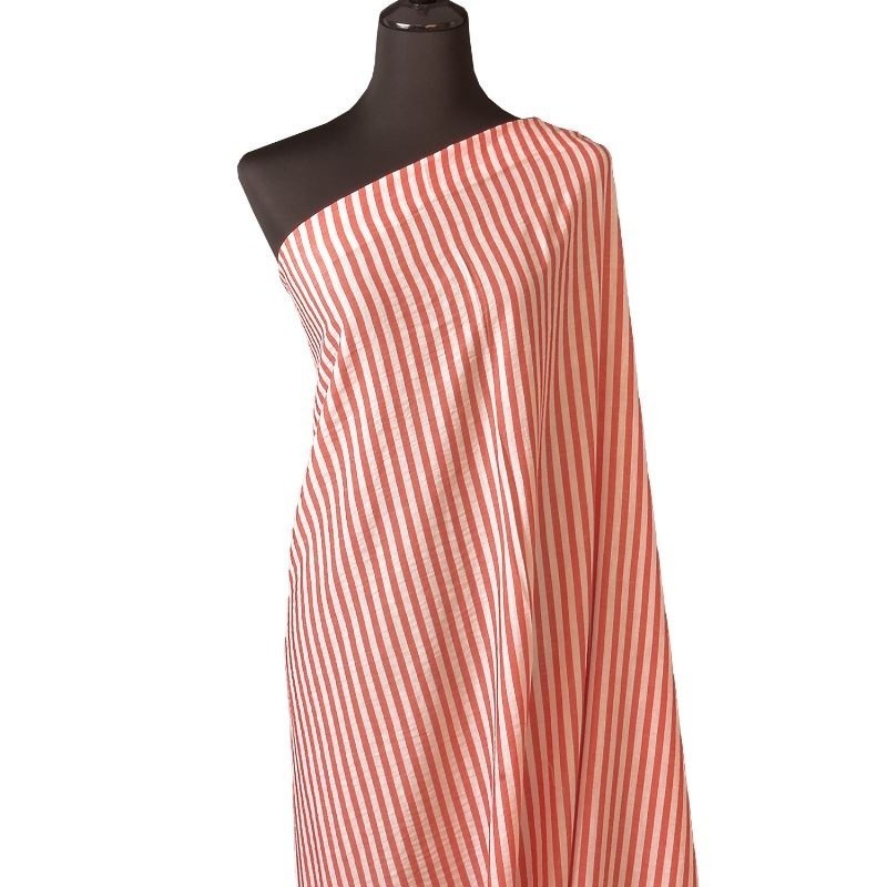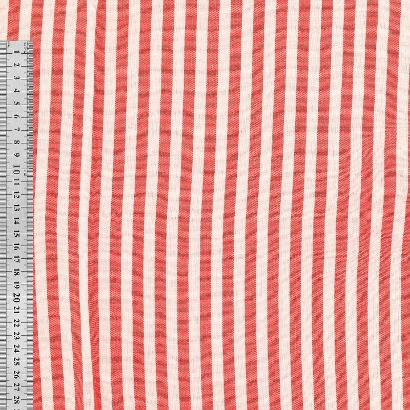 Cette étamine tissé-teint se distingue par sa légèreté et sa main souple. Ce tissu au tombé aérien est idéal pour les vêtements estivaux. Le motif à fines rayures coloris rouge, obtenu par un tissage teint fil, offre un rendu subtil et élégant, avec une excellente tenue des couleurs et une grande durabilité dans le temps. Les rayures régulières structurent le tissu tout en conservant une esthétique légère et contemporaine. Polyvalente, cette étamine convient parfaitement à la réalisation de chemisiers, robes légères, tuniques, voiles, ou détails de mode nécessitant finesse