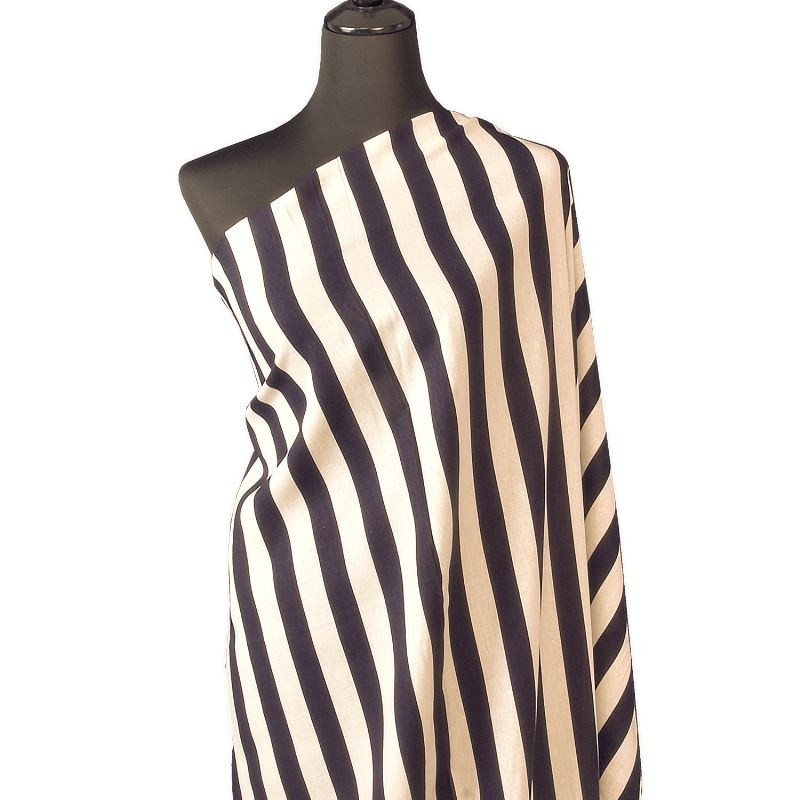 Les rayures coloris marine apportent une touche graphique et intemporelle, parfaite pour des pièces modernes ou d’inspiration estivale. Agréable au toucher et respirant, ce tissu convient particulièrement aux vêtements portés à même la peau.
