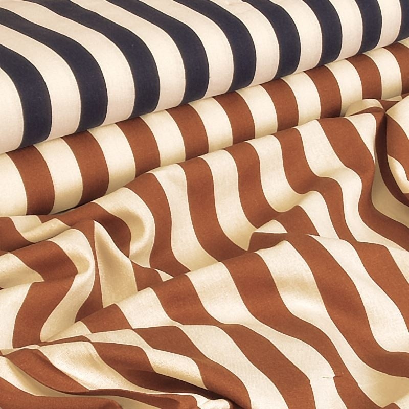Toile d’habillement rayée en mélange viscose et lin, alliant l’aspect naturel et texturé du lin à la douceur et à la fluidité de la viscose. Ce tissu offre un tombé souple tout en conservant une bonne tenue, idéal pour des créations élégantes et confortables.