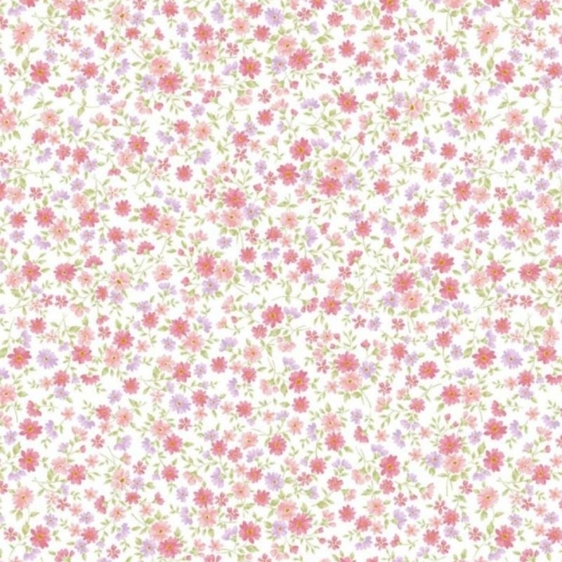 Nouveau Tissu Popeline Imprimé Fleurs Rose Agrandir l'image