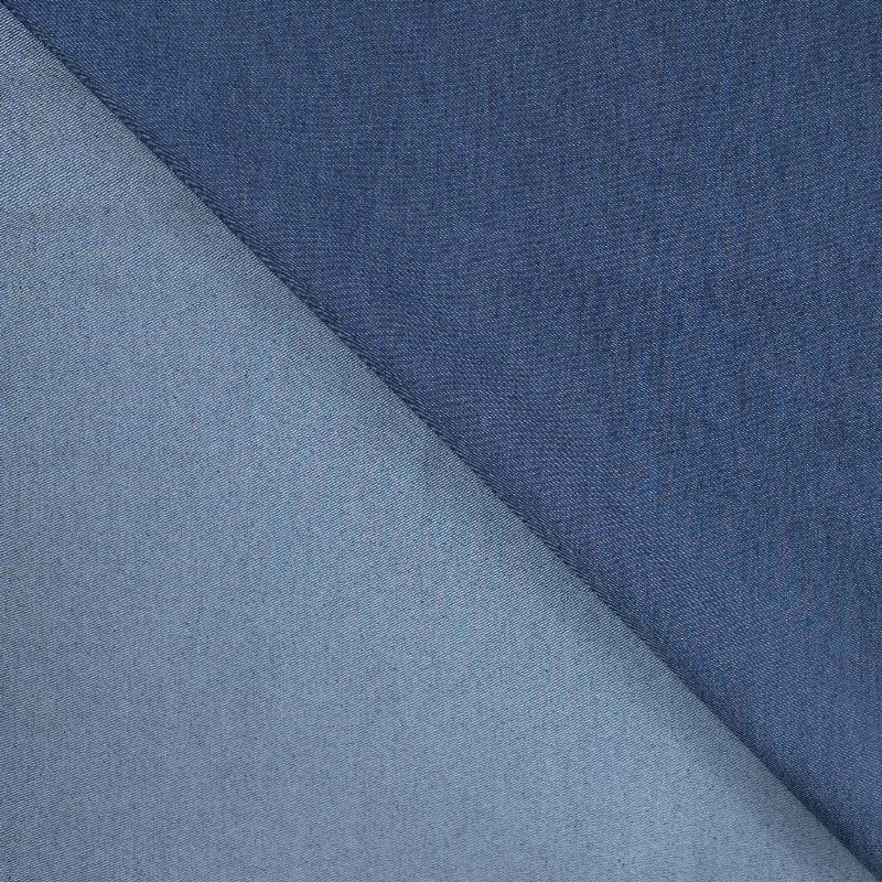 Confectionnez des chemisiers, pantalons, jupes, robes ou encore des vestes avec ce tissu chambray jean elasthanne bleu foncé.