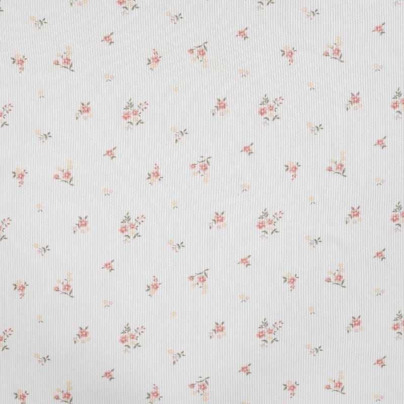 Tissu Jersey Côtelé Coton Imprimé Fleurs Ecru