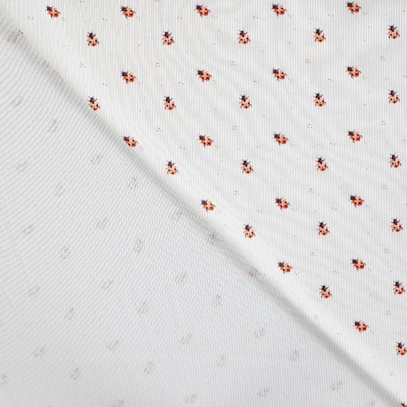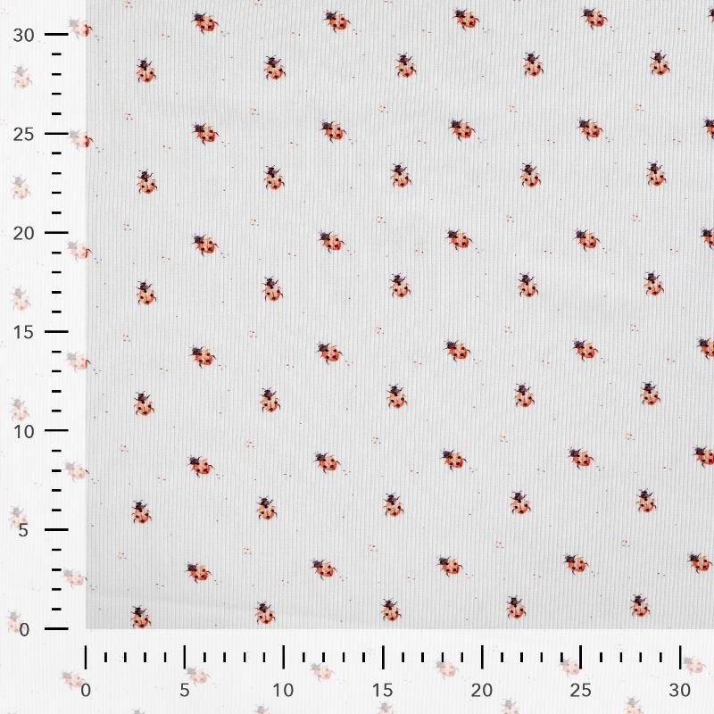 Tissu Jersey Côtelé Coton Imprimé Coccinelle Ecru
