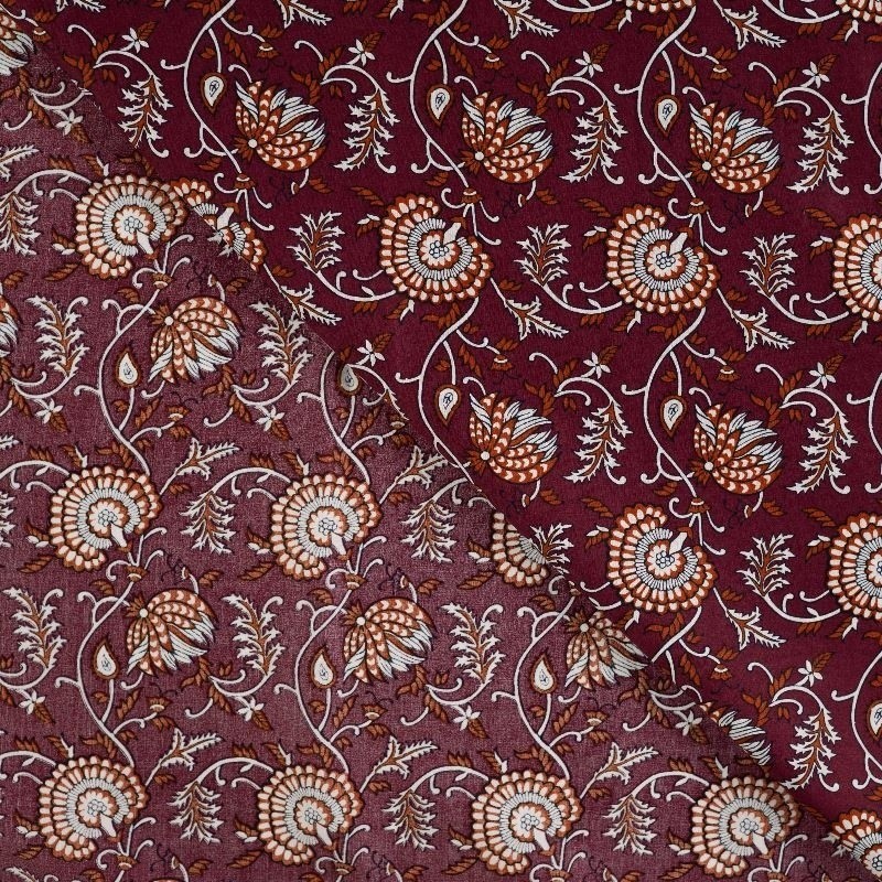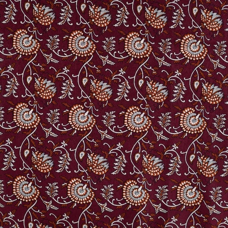 Le voile de coton est une matière agréable à porter car elle est douce et légère. Ce tissu imprimé de fleurs sur un fond coloris cognac peut-être utilisé pour la confection de vêtements légers comme des chemisiers ou pour des robes à doubler.