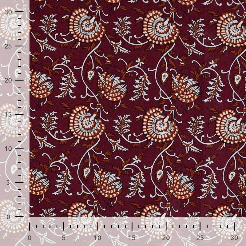 Tissu Voile de Coton Imprimé Fleurs Cognac