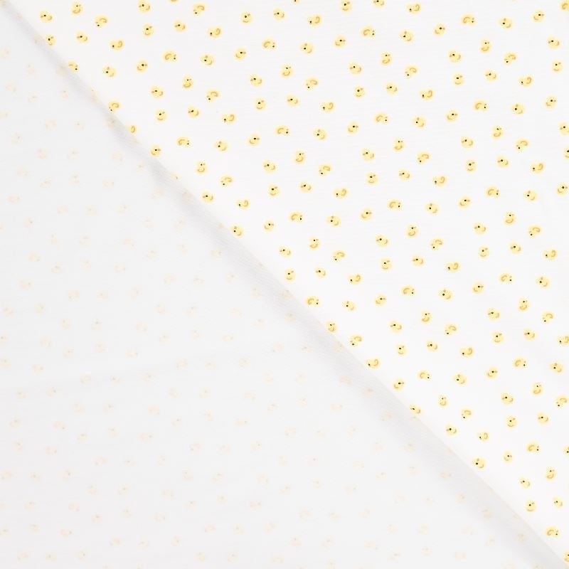 Ce tissu jersey de coton imprimé d'un motif canard sur fond beige est un incontournable pour la confection de vêtements confortables et modernes. Composé de 95% coton et 5% élasthanne, il offre une excellente élasticité, une grande douceur au toucher et un très bon maintien. Avec son grammage de 200 g/m², ce jersey présente une belle tenue tout en restant souple et agréable à porter.