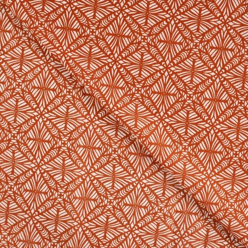 Le voile de coton est une matière agréable à porter car elle est douce et légère. Ce tissu imprimé d'un motif géométrique sur un fond coloris cognac peut-être utilisé pour la confection de vêtements légers comme des chemisiers ou pour des robes à doubler.