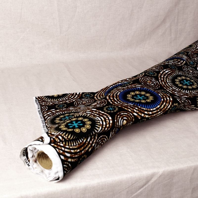 Le tissu Wax 100% polyester imprimé d'un motif géométrique marron est idéal pour le vestimentaire ou en déco. Vous pouvez également utiliser ce tissu pour la confection de sacs ou de pochettes. On aime son toucher doux et sa belle tenue.