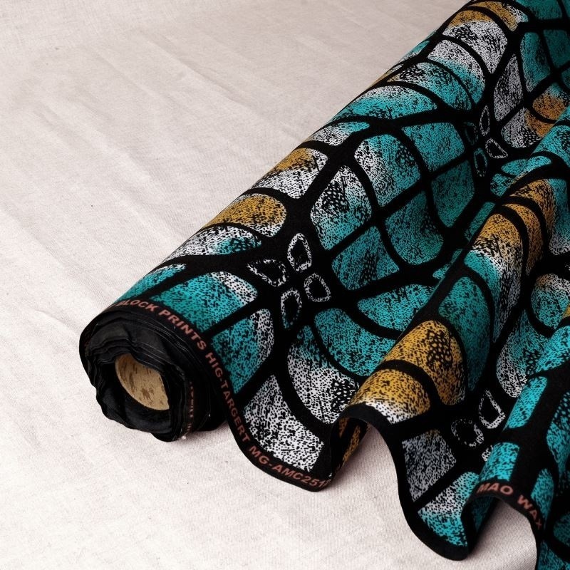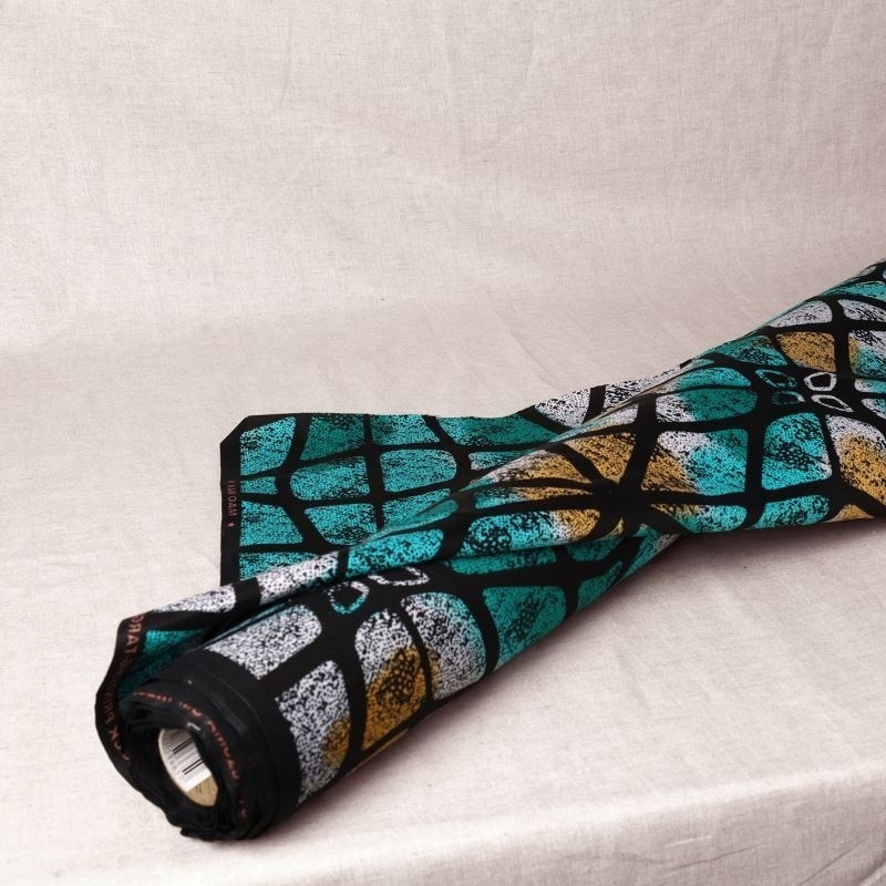 Le tissu Wax 100% polyester imprimé d'un motif géométrique bleu et jaune est idéal pour le vestimentaire ou en déco. Vous pouvez également utiliser ce tissu pour la confection de sacs ou de pochettes. On aime son toucher doux et sa belle tenue.