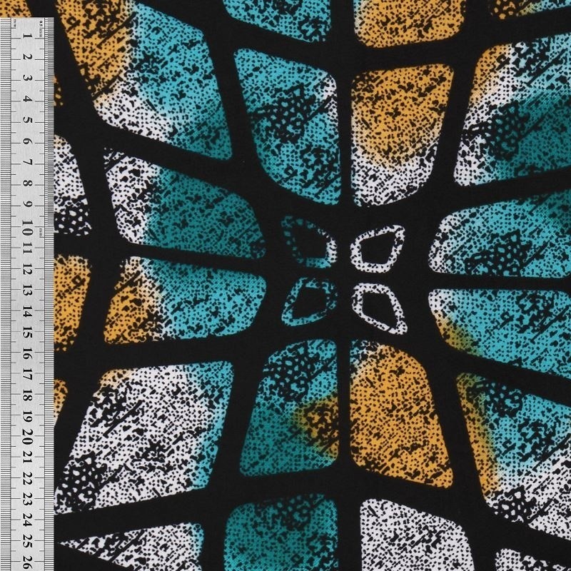Tissu Wax Imprime Mix Géo Bleu et Jaune