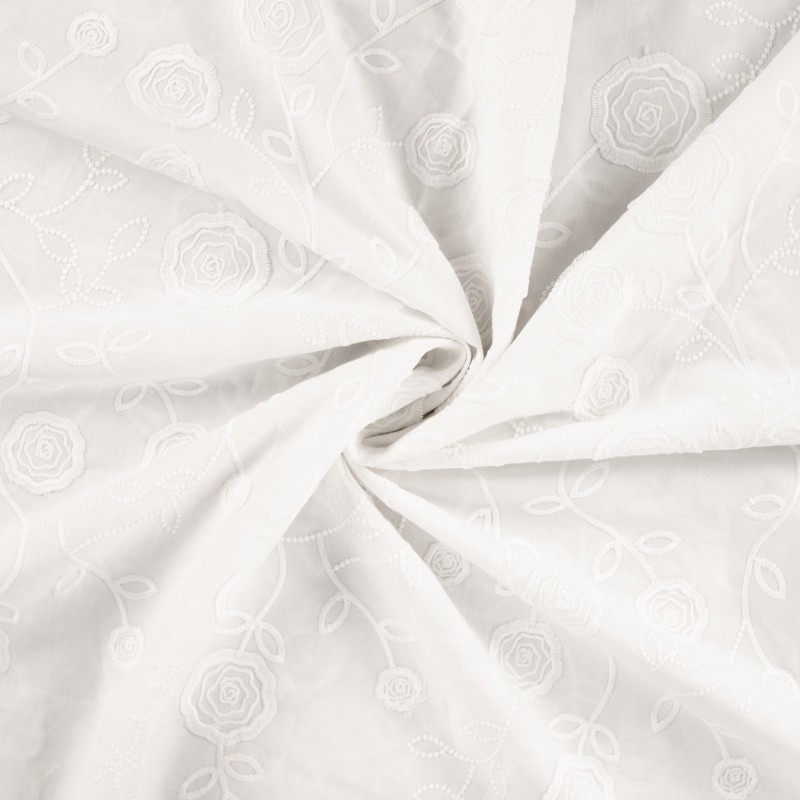 Craquez pour ce tissu brodé fleur sur une base coton coloris blanc ultra tendance. Cette matière est idéale pour l'été. Elle convient pour la confection de chemisiers ou de robes.