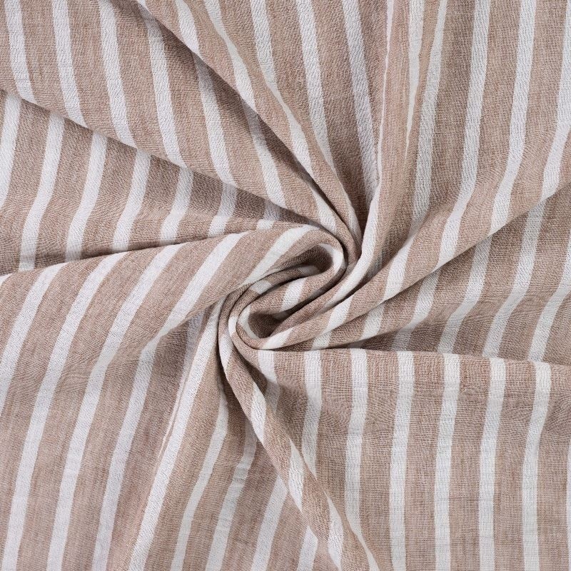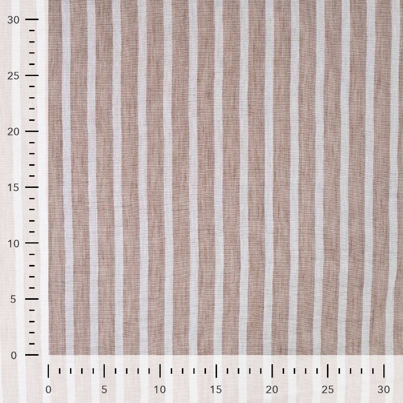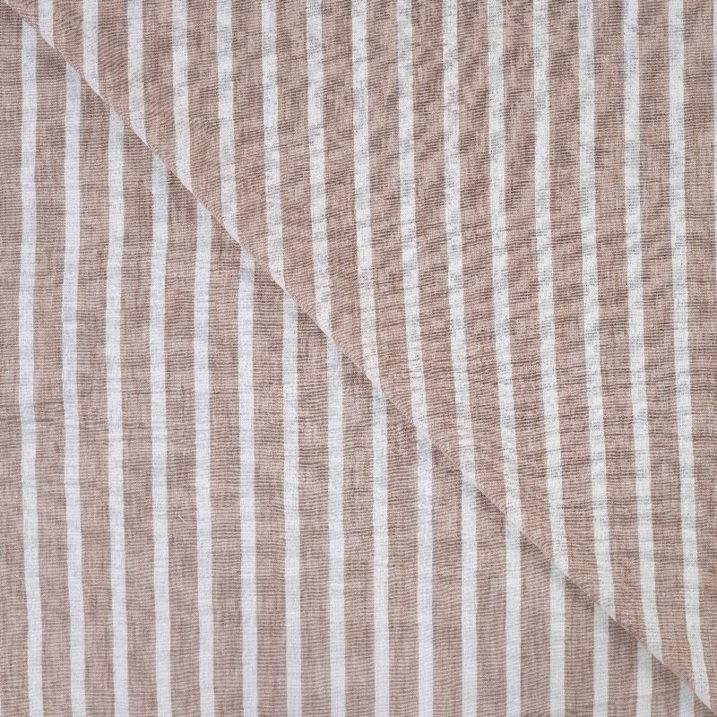 Ce tissu 100 % polyester séduit par son effet lin naturel, alliant l’aspect authentique du lin à la résistance et à la facilité d’entretien du polyester. Son motif rayé taupe, à la fois sobre et élégant, apporte une touche naturelle et contemporaine, idéale pour des créations décoratives ou vestimentaires.