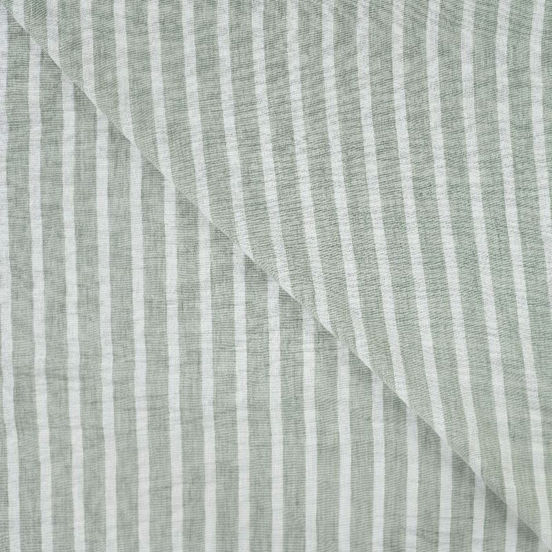 Ce tissu 100 % polyester séduit par son effet lin naturel, alliant l’aspect authentique du lin à la résistance et à la facilité d’entretien du polyester. Son motif rayé kaki, à la fois sobre et élégant, apporte une touche naturelle et contemporaine, idéale pour des créations décoratives ou vestimentaires.