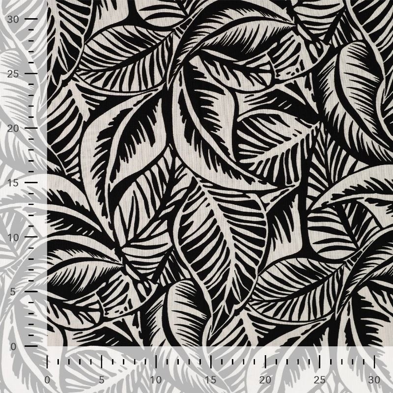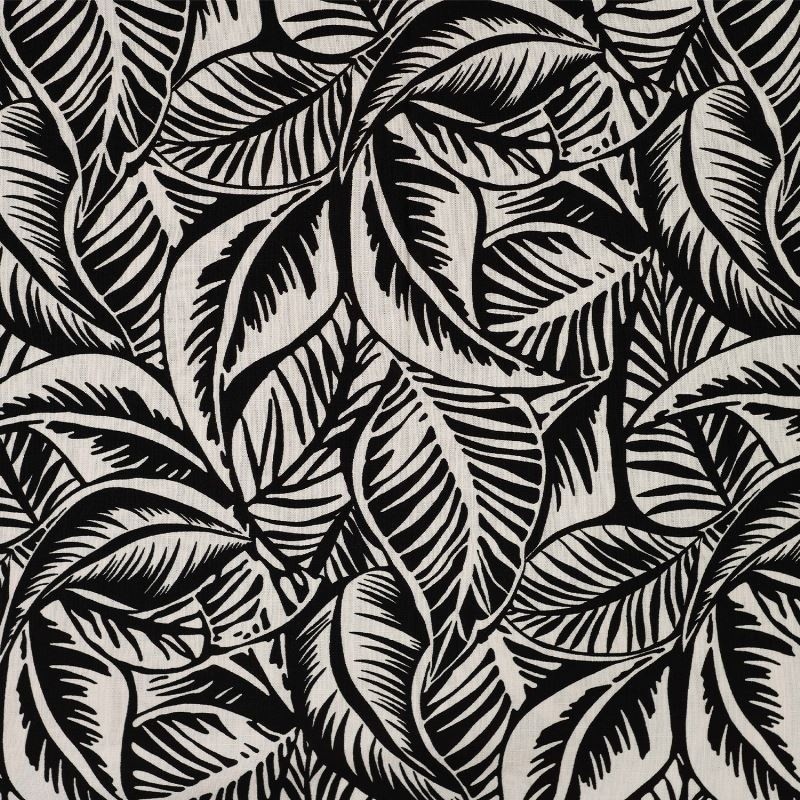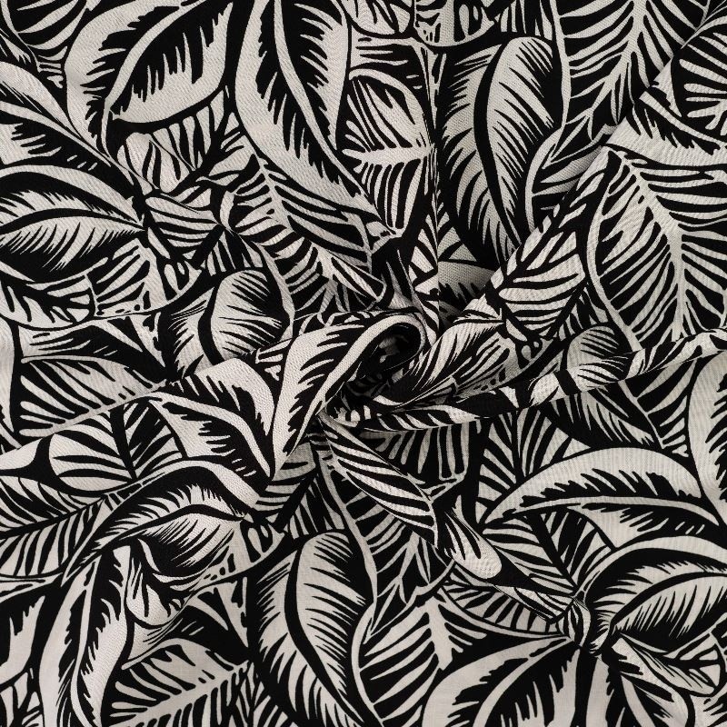 A la fois fluide et léger ce tissu en rayonne imprimé d'un motif feuillage noir est parfait pour la confection de vêtements pour les beaux jours. Ce produit contient 3% d'élasthanne pour plus de confort.