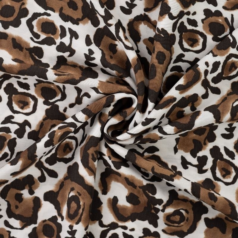 Confectionnez-vous une garde robe sur mesure avec ce tissu crêpe viscose et son imprimé abstrait marron. Il conviendra pour la confection de chemisiers, de robes ou encore de foulards.