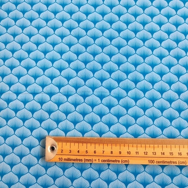 Son motif éventail, délicat et rythmé, apporte du caractère à vos réalisations. Décliné dans un coloris bleu turquoise doux, il s’intègre aussi bien dans des univers modernes que plus classiques.