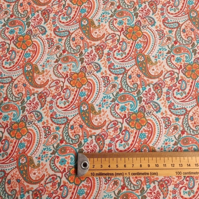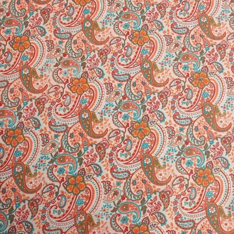 Ce tissu popeline Madurai 100% coton imprimé d'un motif cachemire est à la fluide et souple, il conviendra parfaitement pour la réalisation d'accessoire déco.