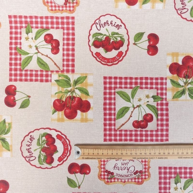 L'enduction permettra un entretien facile de votre tissu avec un simple coup d'éponge. Ce tissu Delicia avec son motif cerise conviendra parfaitement pour la confection de vos nappes et petits accessoires (sacs, trousses). Pratique il s'utilise aussi bien à l'intérieur qu'à l'extérieur.
