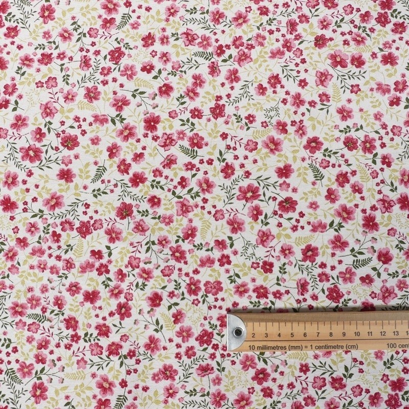 Apportez une touche de fraîcheur et de délicatesse à vos créations avec ce tissu Ciri en pur coton, orné d’un élégant motif floral imprimé.