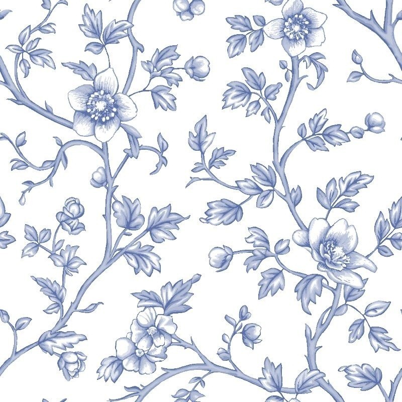 Tissu Cretonne Imprimée Elisabeth Fleurs Bleu