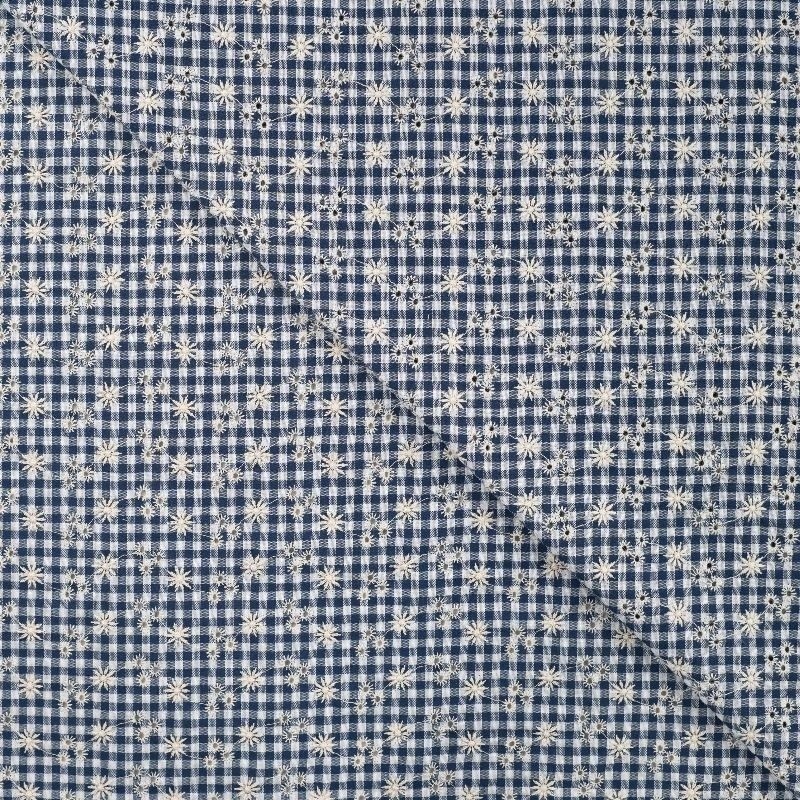 Ce tissu seersucker bleu marine avec son aspect gaufré et ses broderies sera parfait pour la confection de vêtements. Ce motif apporte une touche élégante et intemporelle, il peut être utilisé pour des chemises, des robes, des costumes d’été et des vêtements pour enfants. Son entretien est facile, et son aspect naturellement froissé évite le besoin de repassage.