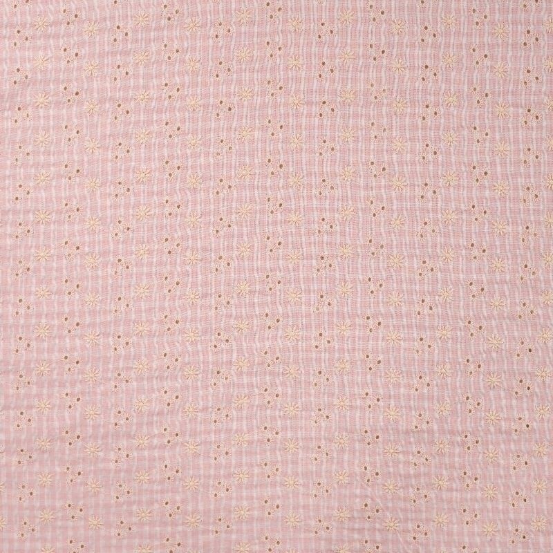Ce tissu seersucker rose avec son aspect gaufré et ses broderies sera parfait pour la confection de vêtements. Ce motif apporte une touche élégante et intemporelle, il peut être utilisé pour des chemises, des robes, des costumes d’été et des vêtements pour enfants. Son entretien est facile, et son aspect naturellement froissé évite le besoin de repassage.