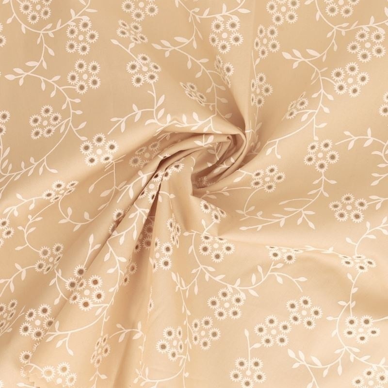 Nouveau Tissu Popeline Floquée Esprit Broderie Beige Agrandir l'image